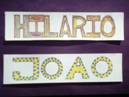 A identificação da Capa (ou portefólio) é muito usual na nossa disciplina. Neste caso, a exploração do conteúdo da comunicação visual passou pelo estudo da letra e posterior exploração do conteúdo forma e área de exploração da pintura. Podem notar que foi pedido aos alunos para manterem uma coerência formal, estética e cromática em todas as letras para que não perturbasse a leitura e a comunicação.